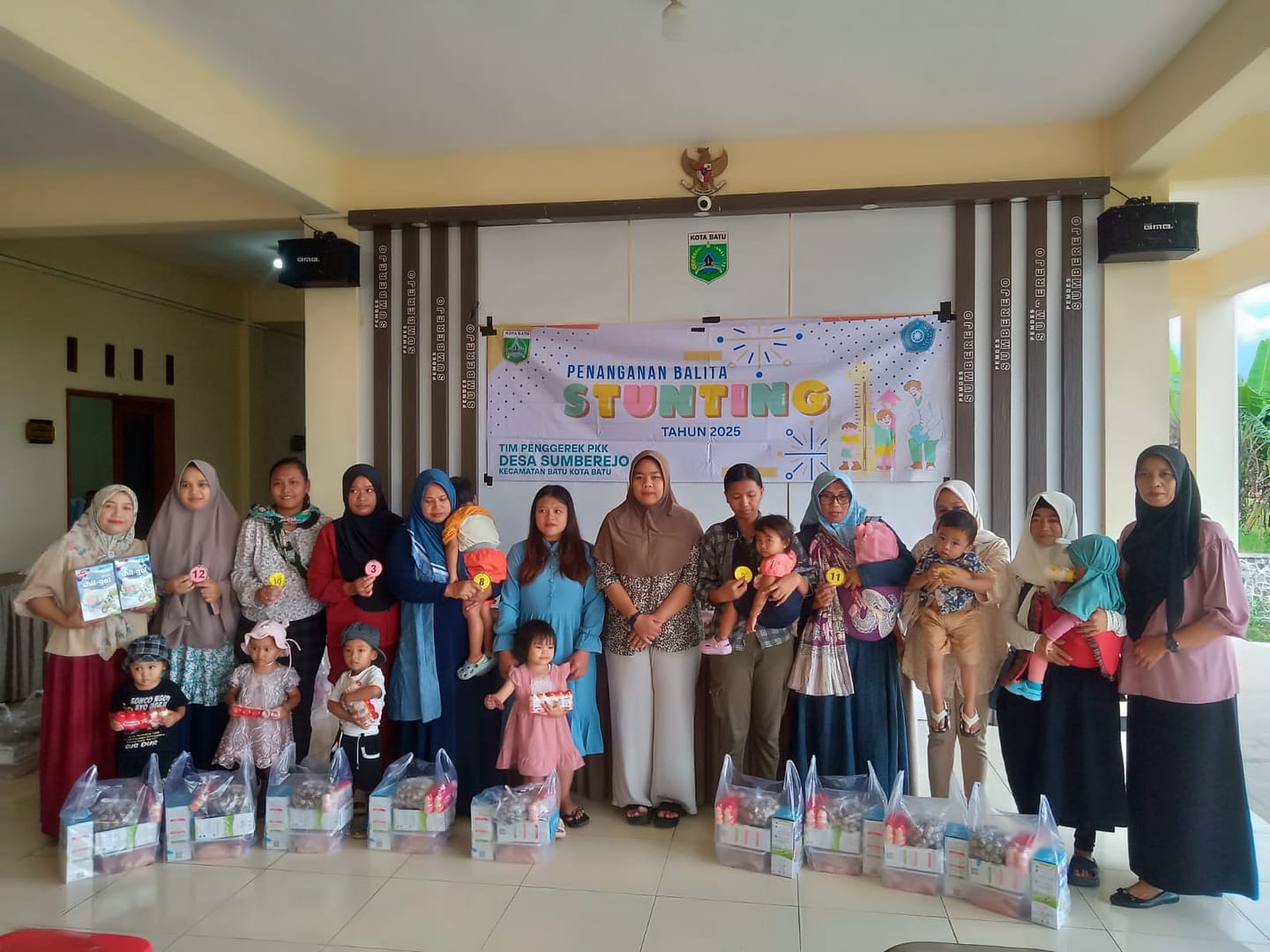 KOTA BATU – Pemerintah Desa Sumberejo, Kota Batu, terus memperkuat upaya penurunan angka stunting melalui program Pemberian Makanan Tambahan (PMT) khusus bagi ibu hamil dan balita stunting. Kegiatan ini digelar di Aula Kantor Desa Sumberejo, Senin (15/12/2025).