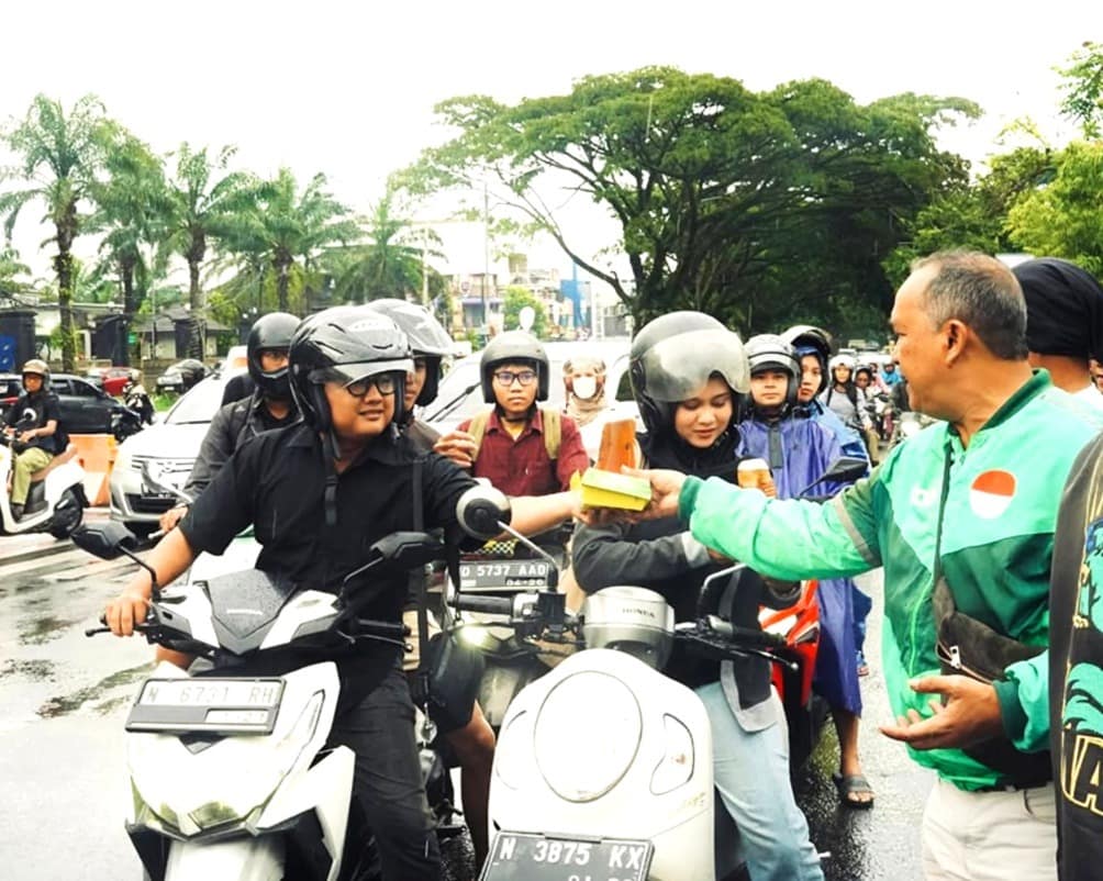 Malamg – Semangat berbagi di bulan suci Ramadan kembali terasa di Kota Malang. Sejumlah mitra pengemudi Grab yang tergabung dalam komunitas mitra Malang menggelar aksi sosial dengan membagikan ratusan paket takjil gratis kepada masyarakat di kawasan Taman Krida Budaya.