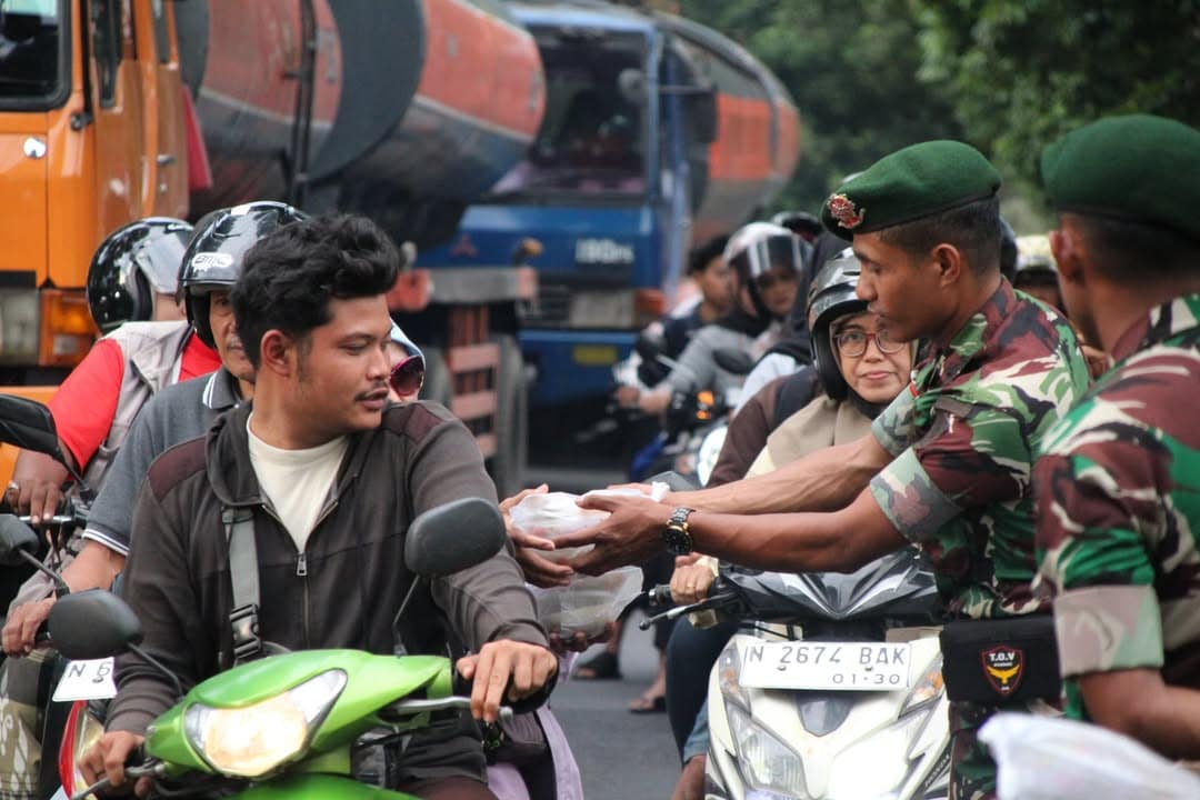 Bagi para pengguna jalan, kegiatan ini bukan sekadar pembagian makanan berbuka puasa. Kehadiran prajurit TNI yang turun langsung menyapa masyarakat di jalan dinilai menjadi simbol kedekatan dan kepedulian yang nyata.
